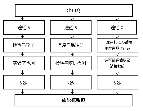 根據途徑 A,即將裝運的管制產品必須經過合規(guī)驗證及物理檢驗,以證明符合庫爾德斯坦相關標準及必需的要求。 認證流程如下: