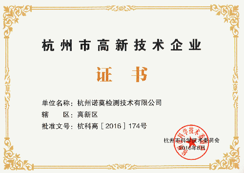 近日,NormalTCI諾莫檢測順利獲得杭州市高新技術企業(yè)認定!公司能成功獲得高新技術企業(yè)認定,是杭州市科技局、濱江區(qū)科技局以及市高新技術企業(yè)認定委員會對我公司技術創(chuàng)新、服務管理、財務制度、隊伍建設以及企業(yè)形象等各方面的全面認可;這也對日后公司進一步規(guī)范化經營、嚴細化運作理、科技型創(chuàng)新提出了更高要求。