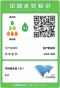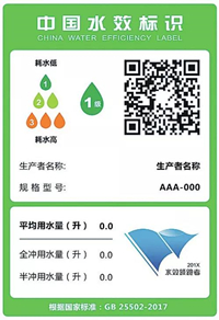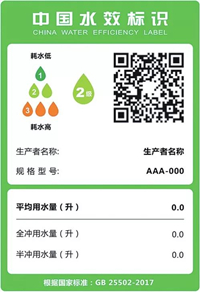 《實施規(guī)則》明確了水效標識上應有的8項基本內容:中文名稱“中國水效標識”;英文名稱“CHINA WATER EFFICIENCY LABEL”;生產(chǎn)者名稱或者簡稱;產(chǎn)品規(guī)格型號;水效等級;水效指標(平均用水量、全沖用水量、半沖用水量);依據(jù)的水效強制性國家標準編號;水效信息碼。