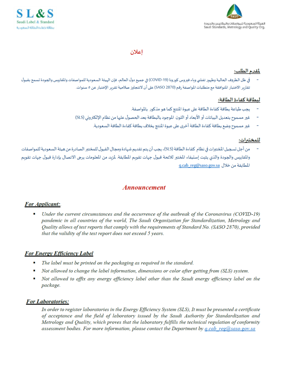 在(SLS)系統(tǒng)中注冊實驗室時,必須提供由SASO頒發(fā)的驗收證書和實驗室資質范圍,以證明實驗室符合沙特對于評估機構的各項技術要求。