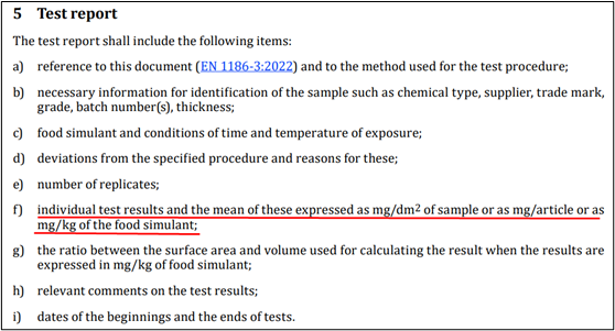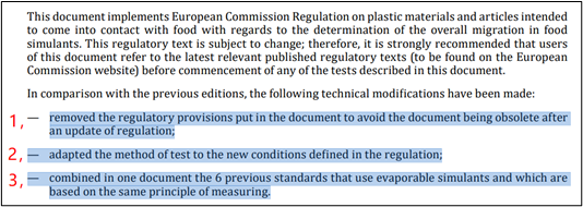 根據(jù)(EU)No. 10/2011及其修正案article 12 第2條及article 17第4條的規(guī)定的新條件,為滿足關(guān)于所有遷移試驗類型測試結(jié)果表達(dá)方式的要求,兩項標(biāo)準(zhǔn)都調(diào)整了測試方法,并增加了相應(yīng)的結(jié)果表述。