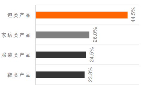 在四大類產(chǎn)品中.包類產(chǎn)品的不合格率最高.為44.5%